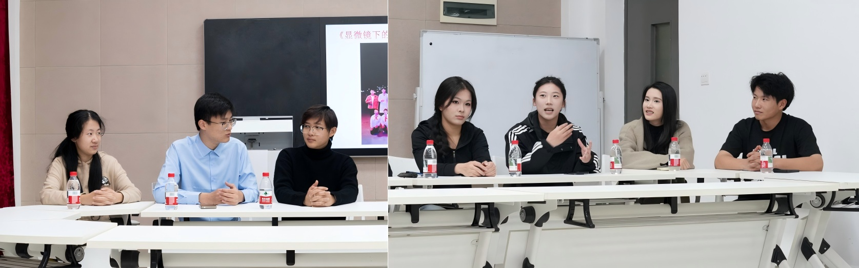 2026 年 1 月 19 日,我校科研处对原创舞台剧《显微镜下的身躯 —— 毛江森院士》主创团队专访活动在506智能教室举行。此次专访以 “以艺载道育新人,科研反哺谱华章” 为主题,邀请到项目总负责人、总策划、总编导、学校特聘教授王玥,科研处聂明丽副处长及学生主创代表齐聚一堂。专访由科研处马超老师主持,同主创团队以对话的方式分享创作背后的初心与坚守、实践中的成长与感悟。