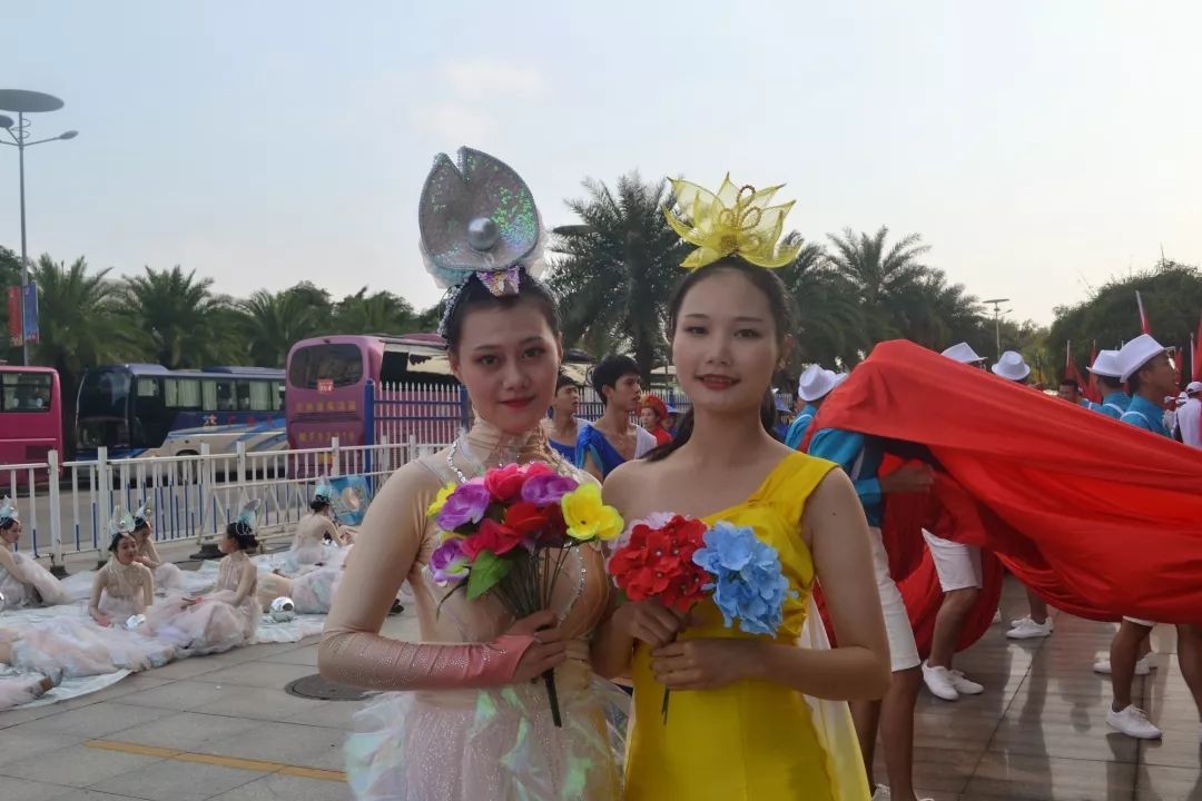 在庆祝大会前期,我校教育学院70名学生,他们不畏艰苦,任劳任怨,经过一个多月的紧张排练,以一流的表演水平顺利地完成了自治区、北海市和学校交付的光荣任务,为庆祝大会文艺演出贡献了北艺的一份力量!
