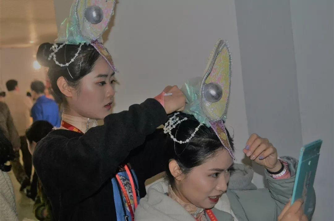 出发南宁演出前,在北海中职校多次调整排练,道具也在排练中进行多次修改。