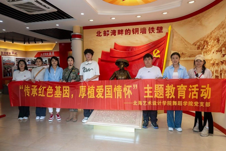 2024 年 10月16日,舞蹈学院党支部在北海市地角女民兵连史纪念馆开展“传承红色基因,厚植爱国情怀”主题教育活动。此次活动旨在通过实地考察与学习地角女民兵连的革命文化历史,增强我院师生的爱国情怀和民族自豪感,进一步坚定理想信念,为新时代舞蹈艺术的发展注入红色动力。