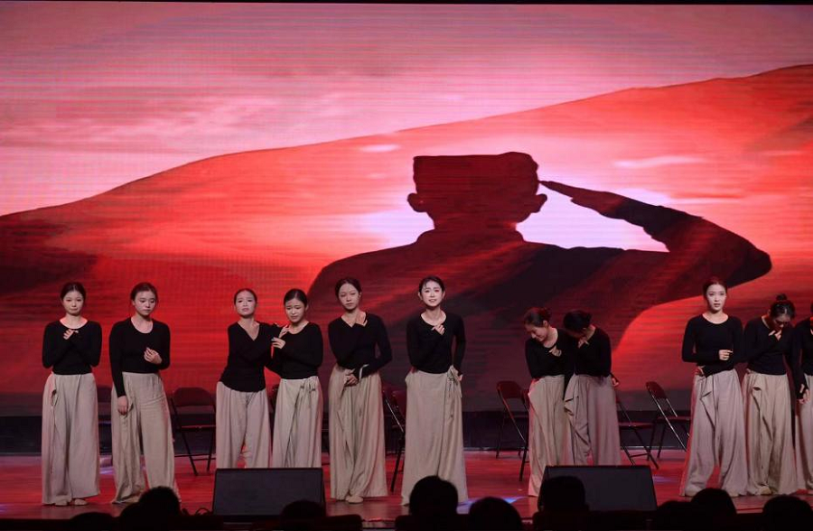 此次文艺汇演以“凝聚新力量 同心颂华章”为主题,由“历史回响”“青春献礼”两个篇章组成,涵盖合唱、诗朗诵、歌舞、武术、汉服走秀、书法、器乐合奏等多种表演形式。