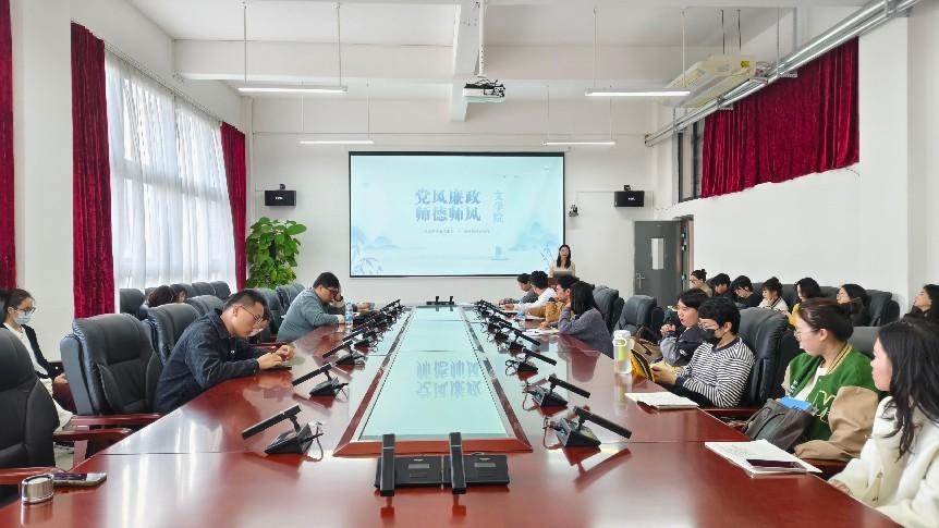 为深入推进师德师风建设,提升教师队伍的思想政治素质和职业道德修养,2025年3月7日下午,文学院在西区图书馆505会议室召开师德师风专题学习会议。此次会议旨在通过集中学习引导教师自觉遵守职业道德规范,进一步规范教师职业行为,营造风清气正的育人环境。本次专题会议由党支部书记岳莹主持,文学院全体教职员工参加。