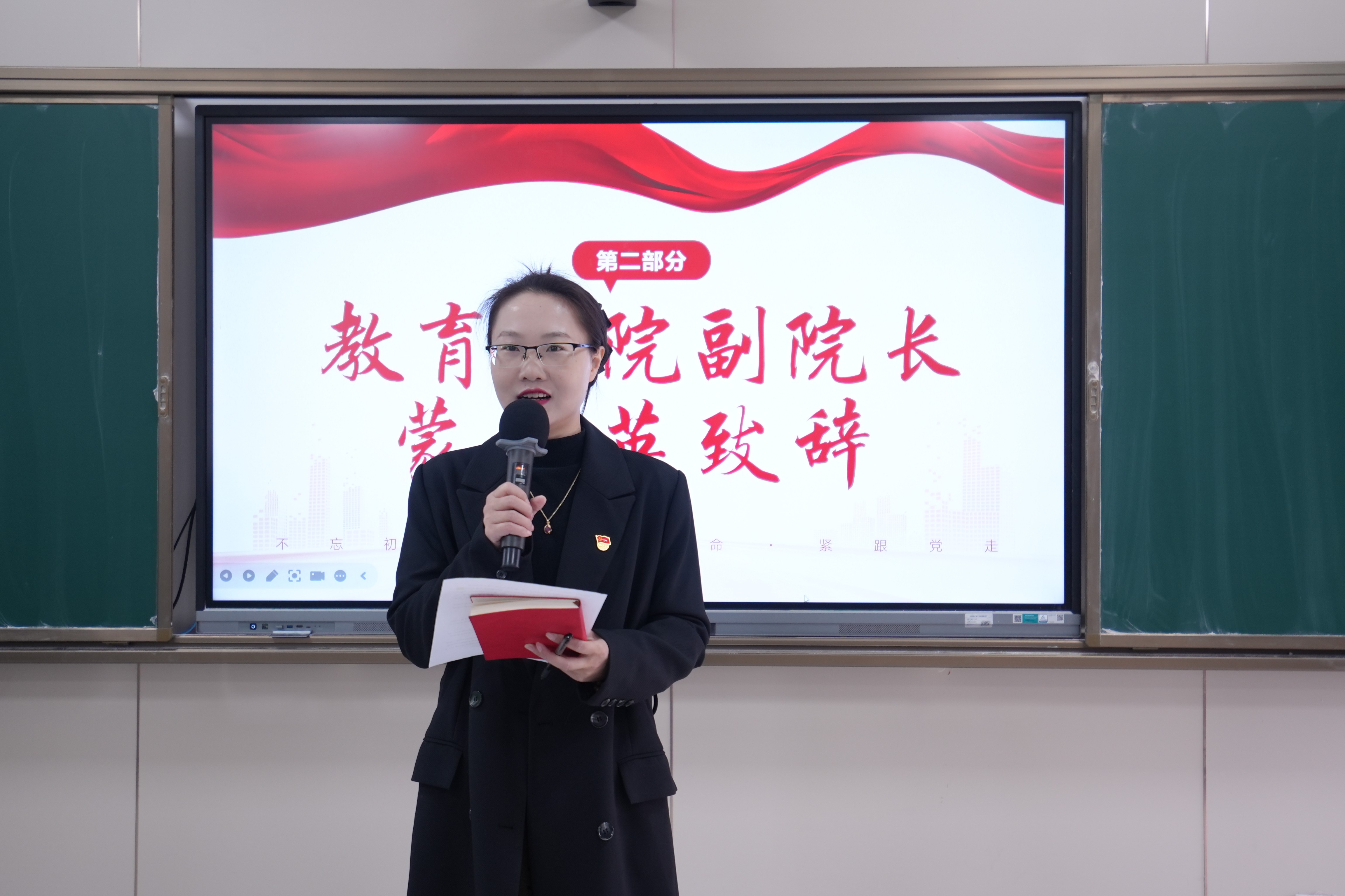 仪式伊始,全体人员合唱中国共产主义青年团团歌,并庄严重温入团誓词。教育学院副院长蒙剑英在致辞中强调,青马培训工程旨在培养政治坚定、理想远大、本领过硬、勇于担当的新时代青年马克思主义者。她殷切期望学员们能够将马克思主义先进理念内化于心、外化于行,勇做新时代精神的引领者和践行者。