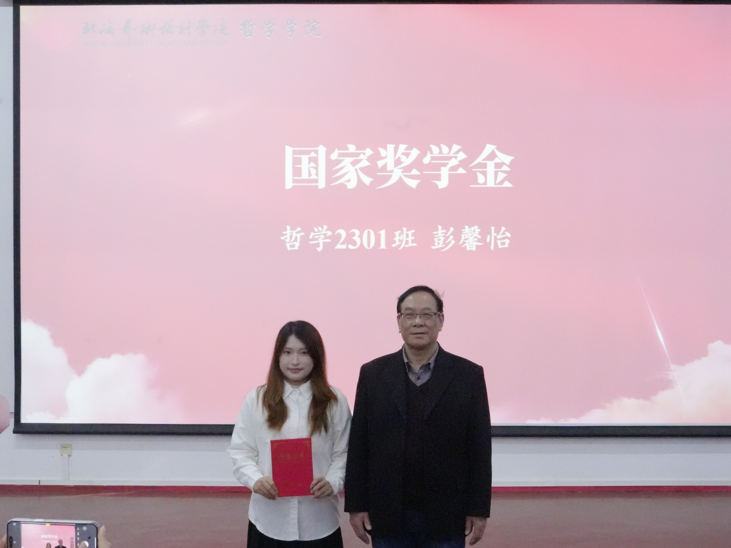 哲学学院蒙绍荣院长为国家奖学金获得者彭馨怡同学颁奖