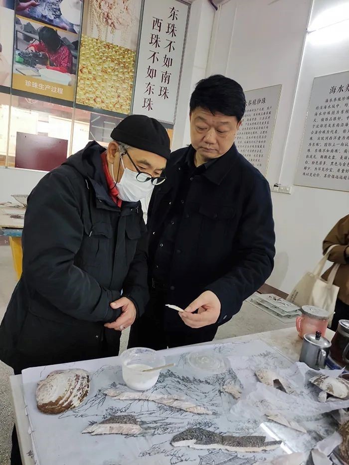 12月12日上午,北海艺术设计学院雕塑系王少军(原中央美术学院教授、博士研究生导师)教授一行4人来到北海贝雕博物馆调研,并就贝雕技艺的保护、传承与发展召开研讨会,北海贝雕博物馆馆长林雄全程陪同。