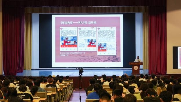 讲座伊始,王伟教授结合个人经验,以连环画的创作为切入点,分享了艺术实践的经验和领悟。他表示,人有目标,不会迷茫。相比较于浑浑噩噩虚度光阴,那些明晰自己为什么而活,踏实朝着目标前进的人,才能让自己行走的每一步都有价值。随后,王伟教授就关于中国文化主题原创内容展开讲解。他特别强调艺术创作要有发现美的眼睛,在中国传统文化中寻找灵感,还需给自己设立每日的目标,沿着既定的轨迹前行,在追逐目标的过程中不断提升自己。 王伟教授以连环画创为切入点,分享艺术实践的经验和领悟