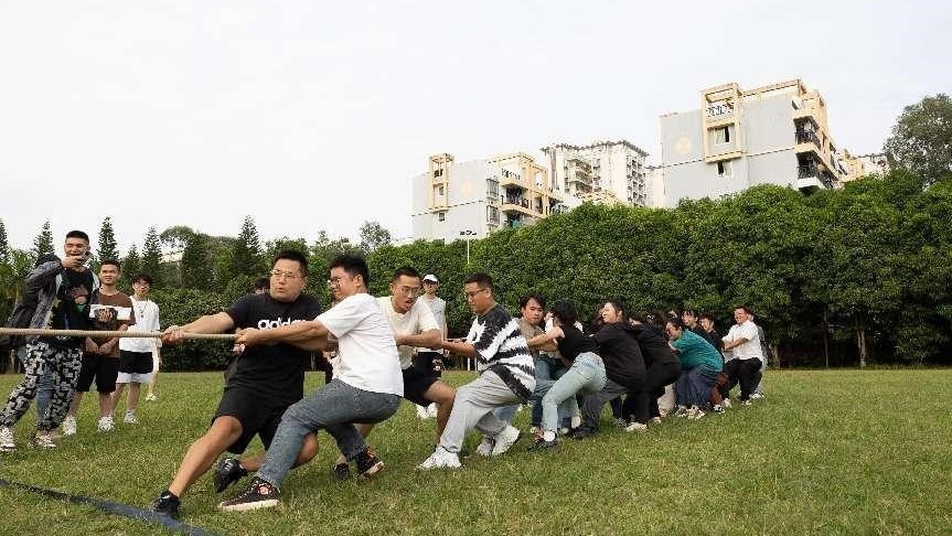为倡导健康锻炼方式,丰富教职工业余生活,20231027日,北海艺术设计学院于东校区操场组织开展第一届教职工拔河比赛。本次拔河比赛全校共有八个学院代表队参赛,比赛采取逐层淘汰和三局两胜的模式进行,美术学院参赛教师积极应战,心往一处想,劲往一处使,展现出青年教师的独特风采。在经过激烈的角逐后,美术学院最终获得教职工拔河比赛三等奖。(李伟民 摄)