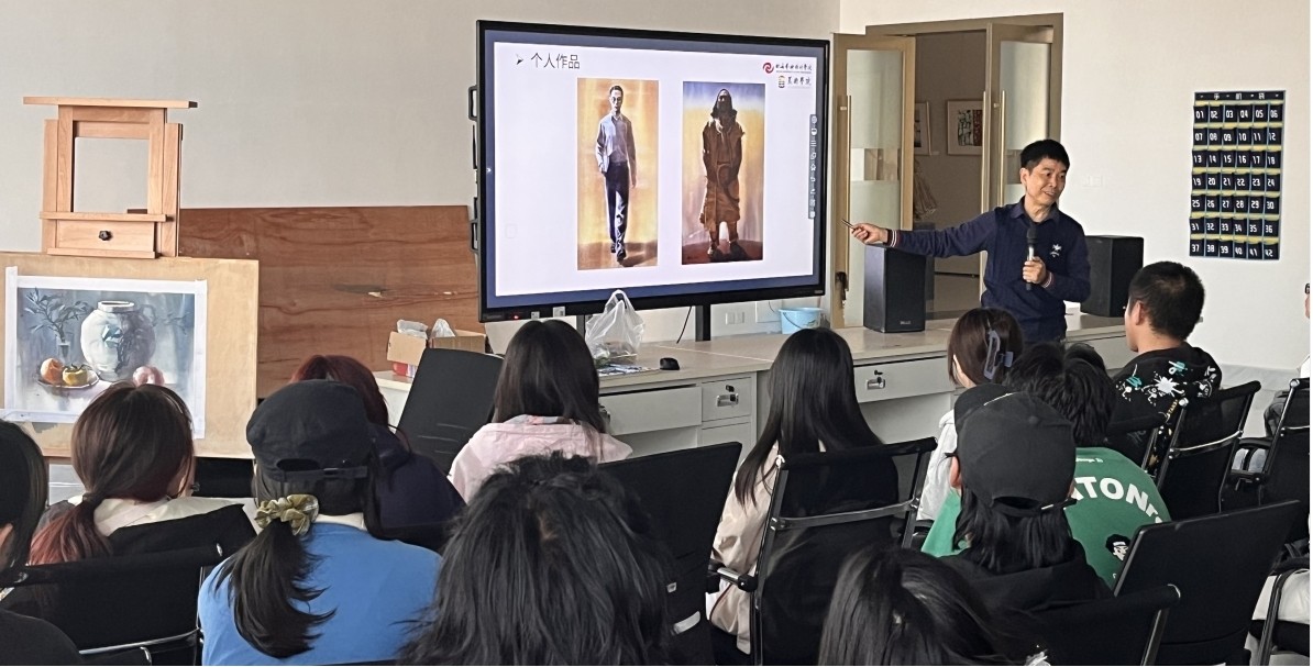 20231117日,廖开教授来我院开展水彩画写生技法与表现的教学示范课。