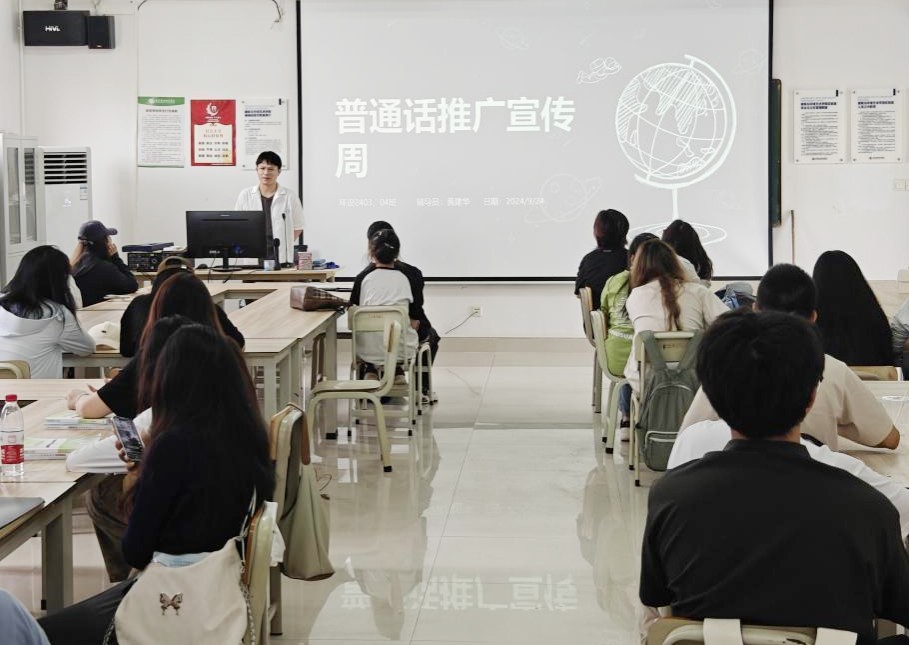 为确保推广活动取得实效,学院制定了详细的活动计划,涵盖课堂教学、班会讨论及课外活动等多种形式。各班辅导员在此次推广过程中扮演了关键角色。他们不仅组织了以普通话推广为主题的班会,还精心制作了内容丰富的PPT,生动讲解普通话的发展历史、标准发音及其在日常生活中的重要性。PPT内容深入浅出,既有历史文化的纵深感,又有实用性强的发音技巧指导,帮助学生在理论学习的基础上,掌握规范的普通话发音。