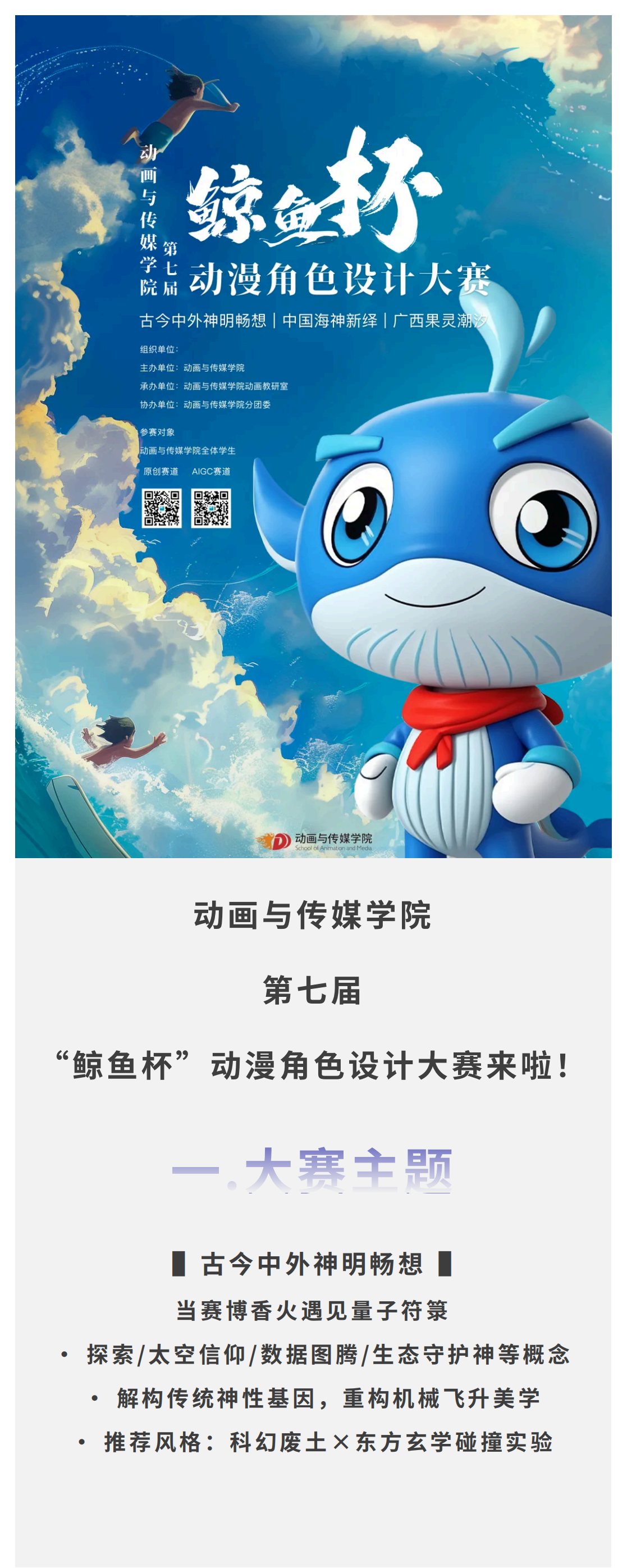 征稿|影视动画学院第七届“鲸鱼杯”动漫角色设计大赛来啦!