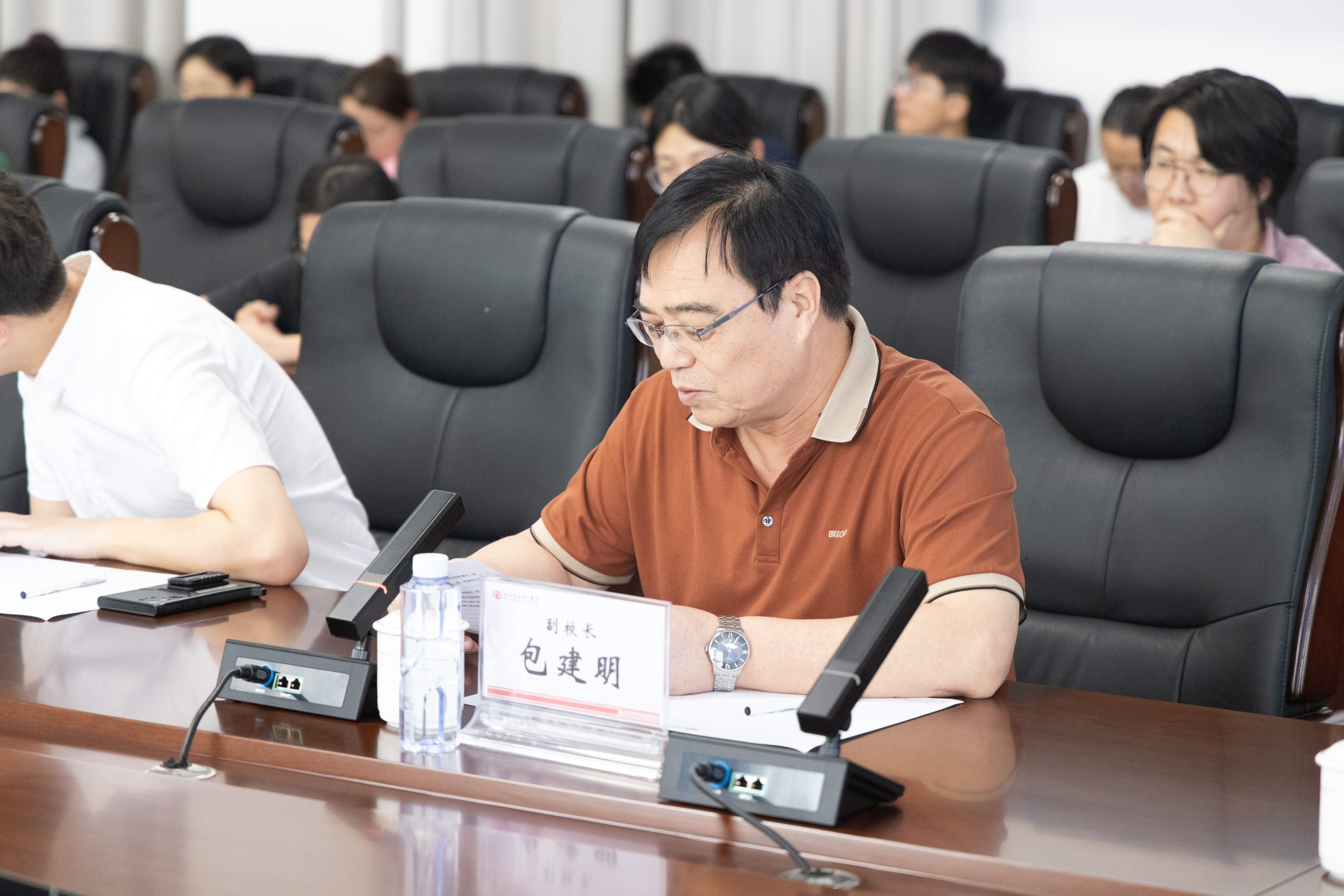 包建明副校长对黄心渊教授的到来表示热烈的欢迎和衷心的感谢,并向与会人员详细介绍了黄心渊教授的专业成就。黄心渊教授任教育部职业院校艺术设计类专业教学指导委员会委员,文化和旅游部2023年度有关人才项目专家评审会评委等,获得国家级教学成果奖一等奖,北京高等学校青年学术带头人,主编多部专业教材,带领团队创作的《教育部高等学校动画、数字媒体教学质量国家标准》作为我国历史上首个动画、数字媒体高等教育领域内的标准文件,对我国动画、数字媒体领域的高等教育做出了突出贡献。