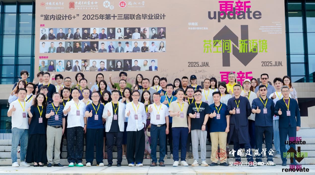 2025年1月17日,由中国建筑学会室内设计分会主办,福州大学、中国美术家协会环境设计艺术委员会、福建省美术家协会环境设计艺术委员会、福建省环境艺术设计协会教育分会、IID室内设计厦门工作站联合主办的室内设计6+”第十三届联合毕业设计华南区在线上举办开题报告会,明确了本届华南区总课题为“更(gēng)新·更(gèng)新——茶空间·新语境”,并于2025年6月14日在福州大学厦门工艺美术学院图展中心107报告厅成功举办毕业答辩汇报会。
