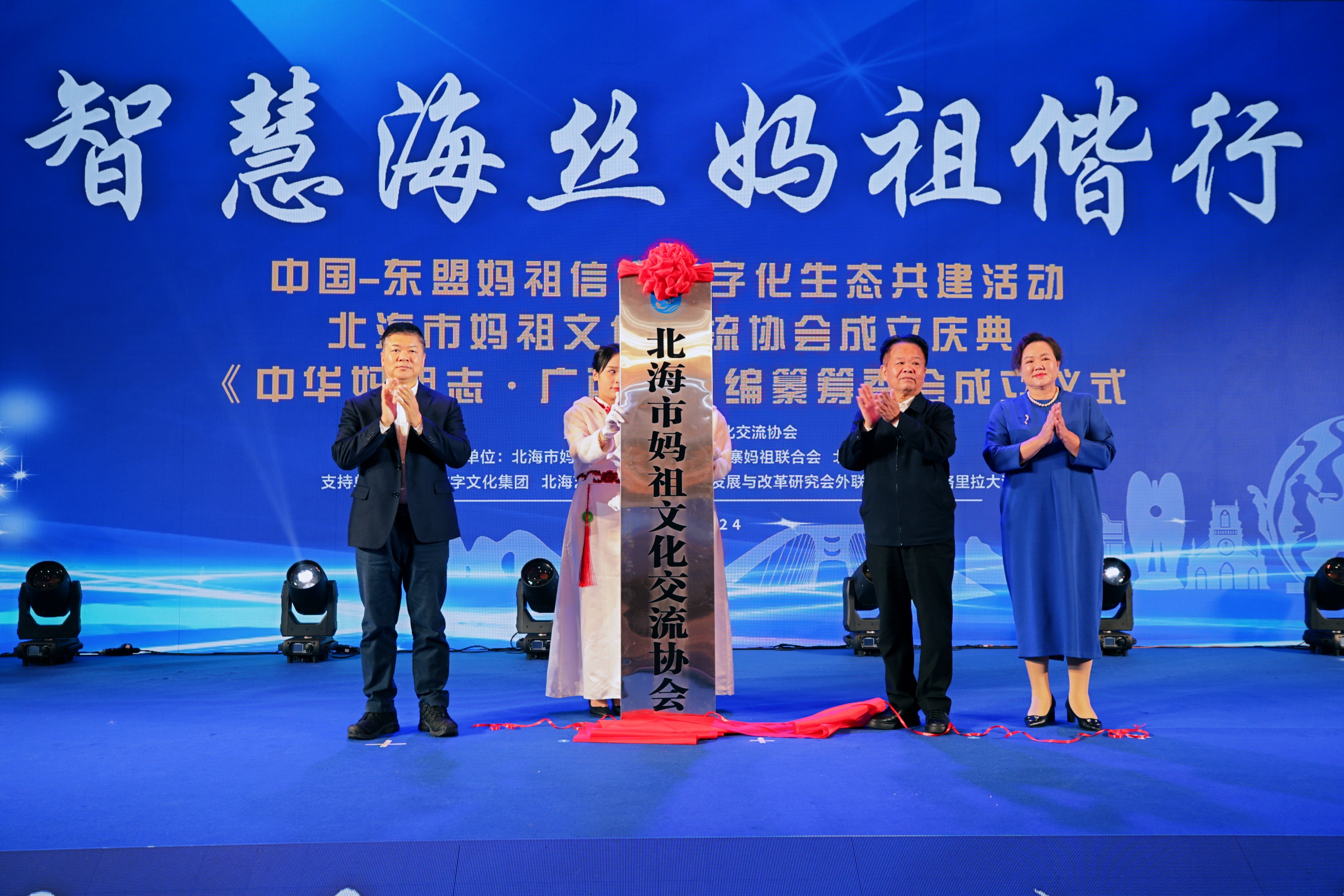 11月24日,广西北海妈祖文化交流协会成立庆典在北海香格里拉大酒店隆重举行,《中华妈祖志・广西卷》编纂筹委会同步揭牌。柬埔寨、新加坡、马来西亚等东盟国家妈祖社团及加拿大、山东、浙江、福建等国内外妈祖文化机构代表齐聚现场,共同见证这一传承海丝文脉、深化跨境交流的文化盛事。建筑与环境艺术学院副院长蔡世伟及教师代表陈欧阳、冀智清受邀出席活动,深度参与妈祖文化传承与发展合作。