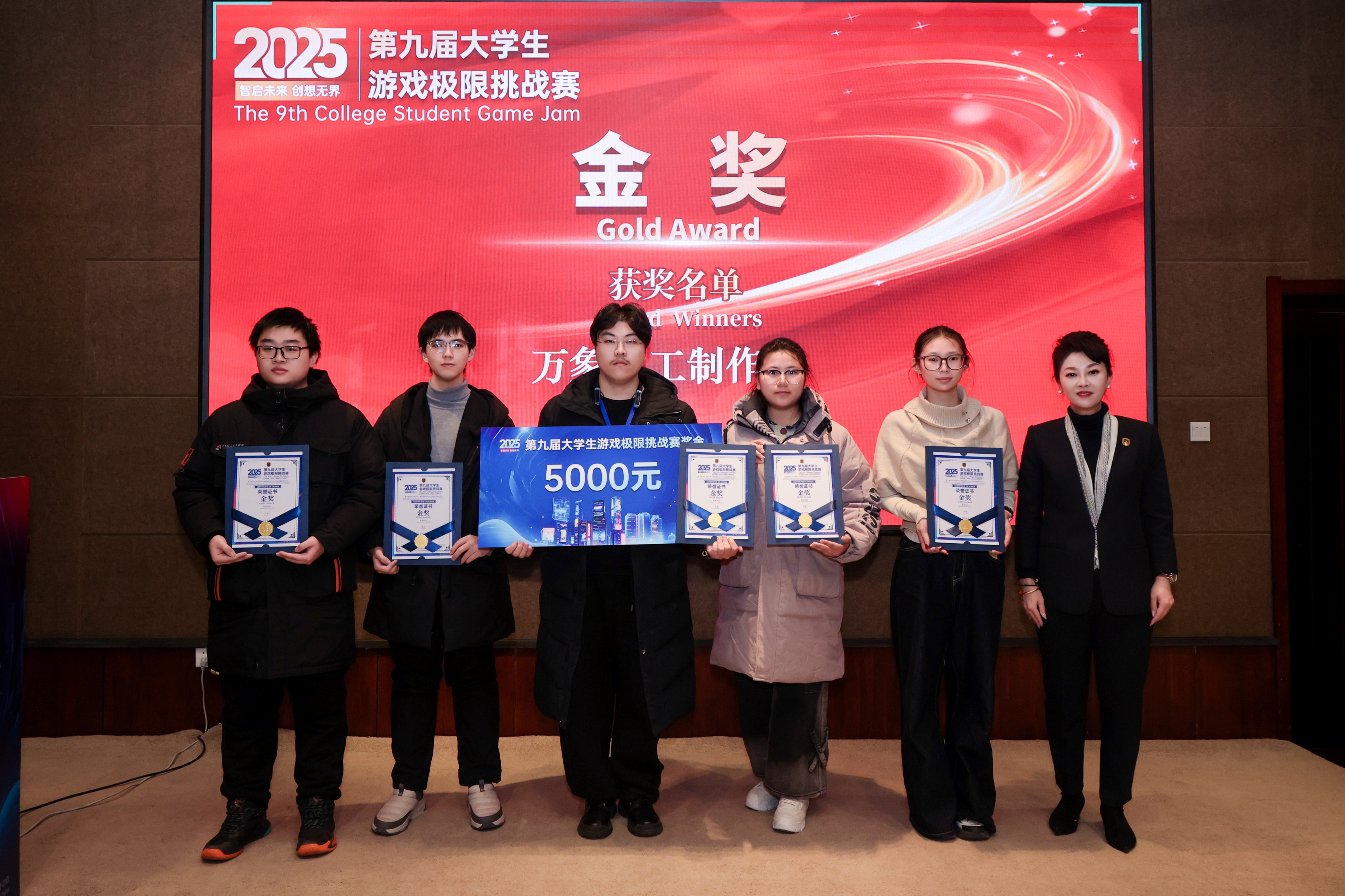 12月21日,2025年第九届全国大学生游戏极限挑战赛于吉林动画学院圆满落幕。本届赛事以“未来”为主题,共吸引来自俄罗斯、韩国及国内多所高校的26支队伍参与角逐。在48小时高强度极限创作中,由我校影视动画学院与河北美术学院、广州美术学院学生共同组成的“万象重工”团队,凭借作品完整的世界观、流畅的玩法与深刻的情感表达,脱颖而出,斩获大赛唯一金奖,充分展现出我院学生优秀的专业素养、协作精神与创新潜力。
