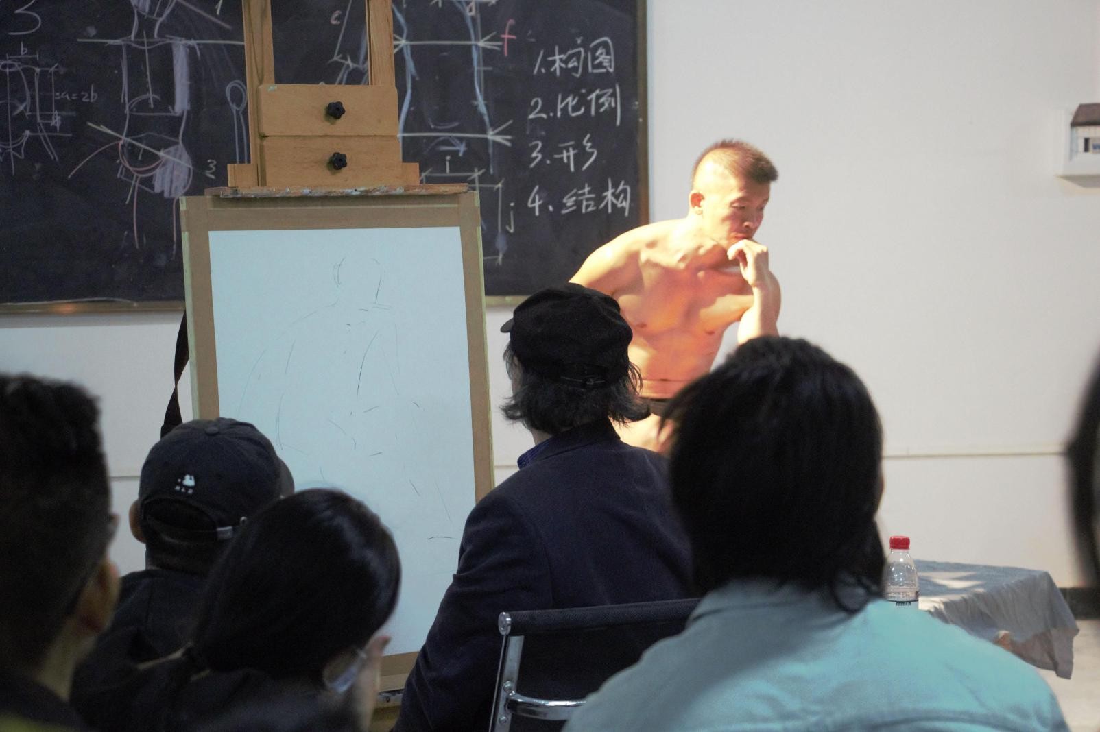 随后,曲教授开始进行示范人体写生步骤,并对创作过程进行了详细讲解。