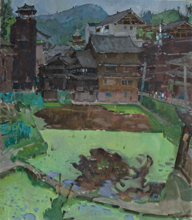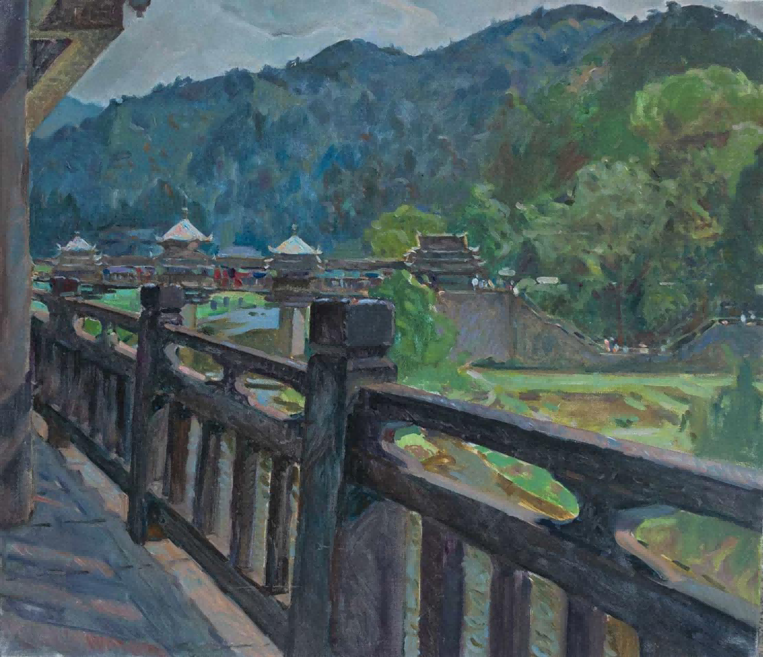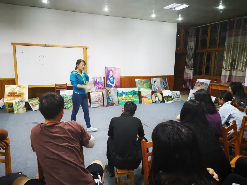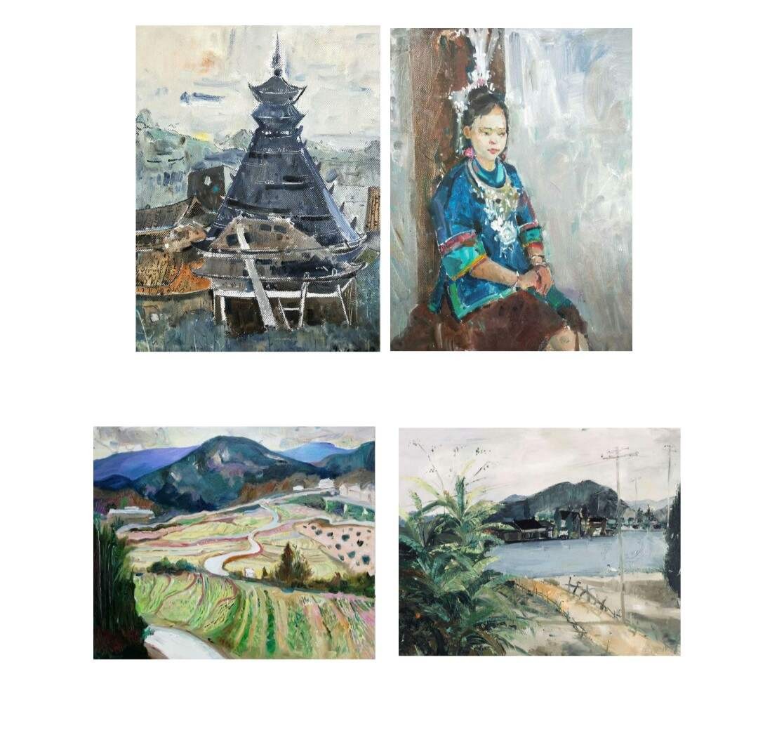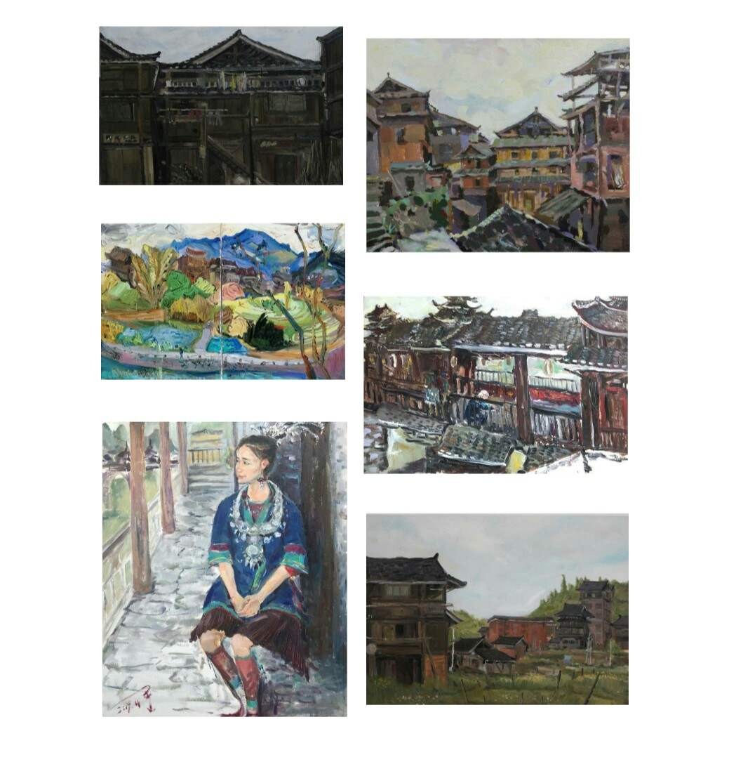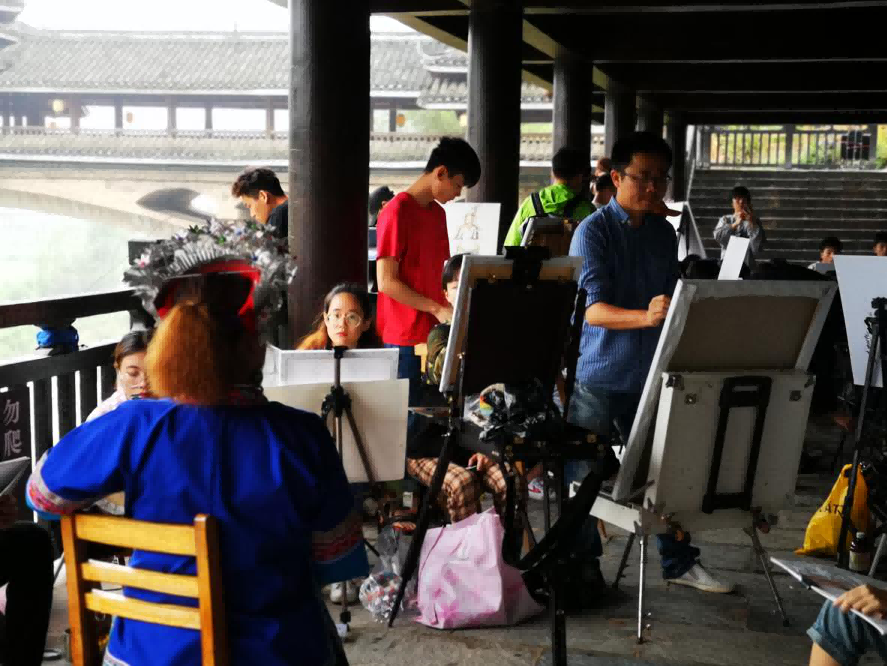 在程阳八寨写生期间,我们请来了程阳八寨本地带有浓郁民族特色的侗族村民来作为模特,进行色彩肖像写生,作为我们对于侗族人民的友好和热情表示致敬。同学们和老师们都将自己的创作才能,挥洒在这片净土之上。