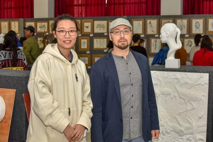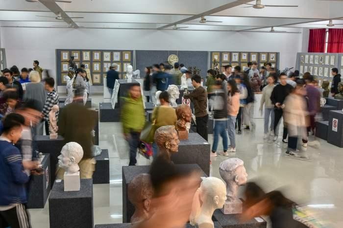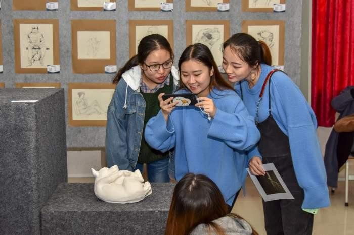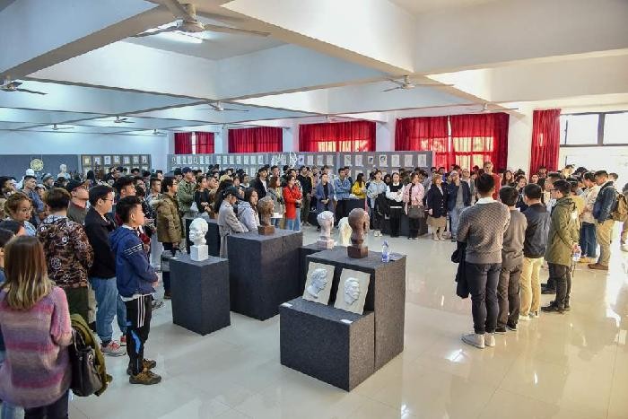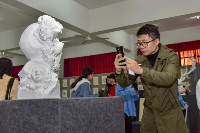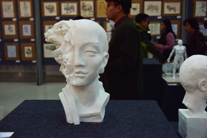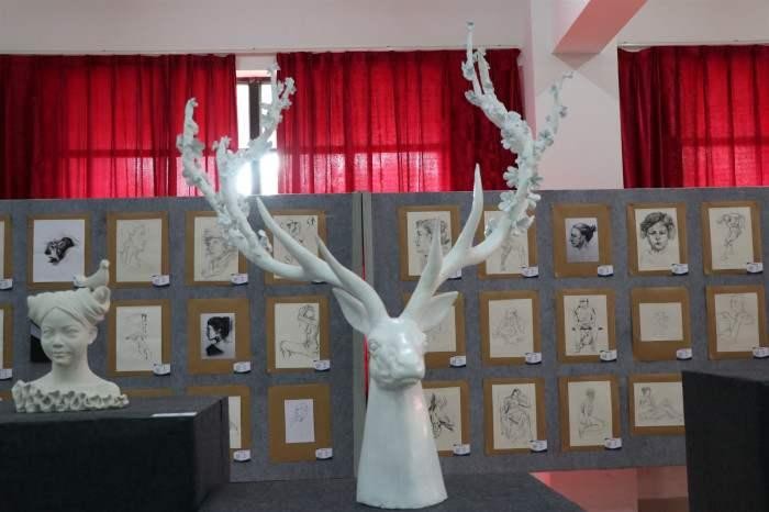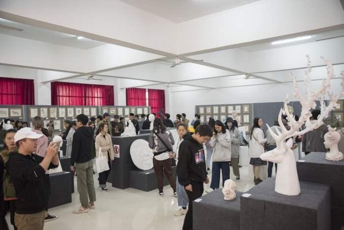 此次展览有老师和学生作品,其中作品除了有雕塑作品 还有一些绘画作品。进入展厅老师和学生的作品令我们惊叹, 在场的师生无不细细品酌每件作品的精妙之处,给我们带来 了一场视觉艺术上的饕餮盛宴。