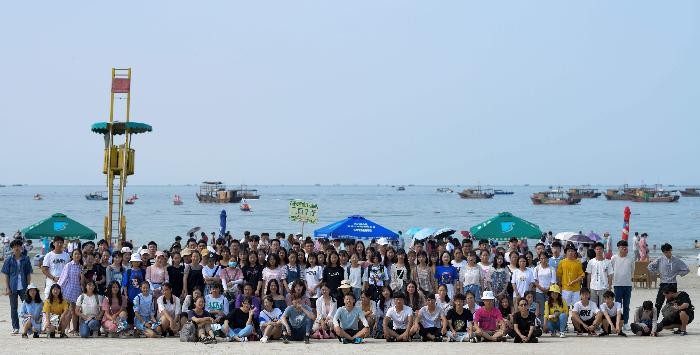 上午九点已是夏日炽阳,但每个同学们都是精神抖擞,充满期待。学校公交送达同学到达目的地银滩后,由学校记者团拍摄班级团体照,在拍摄的时候可以看出每个同学都笑容满面。拍完照片后,各班班主任细心认真地嘱托安全事项,后组织同学们自由活动。