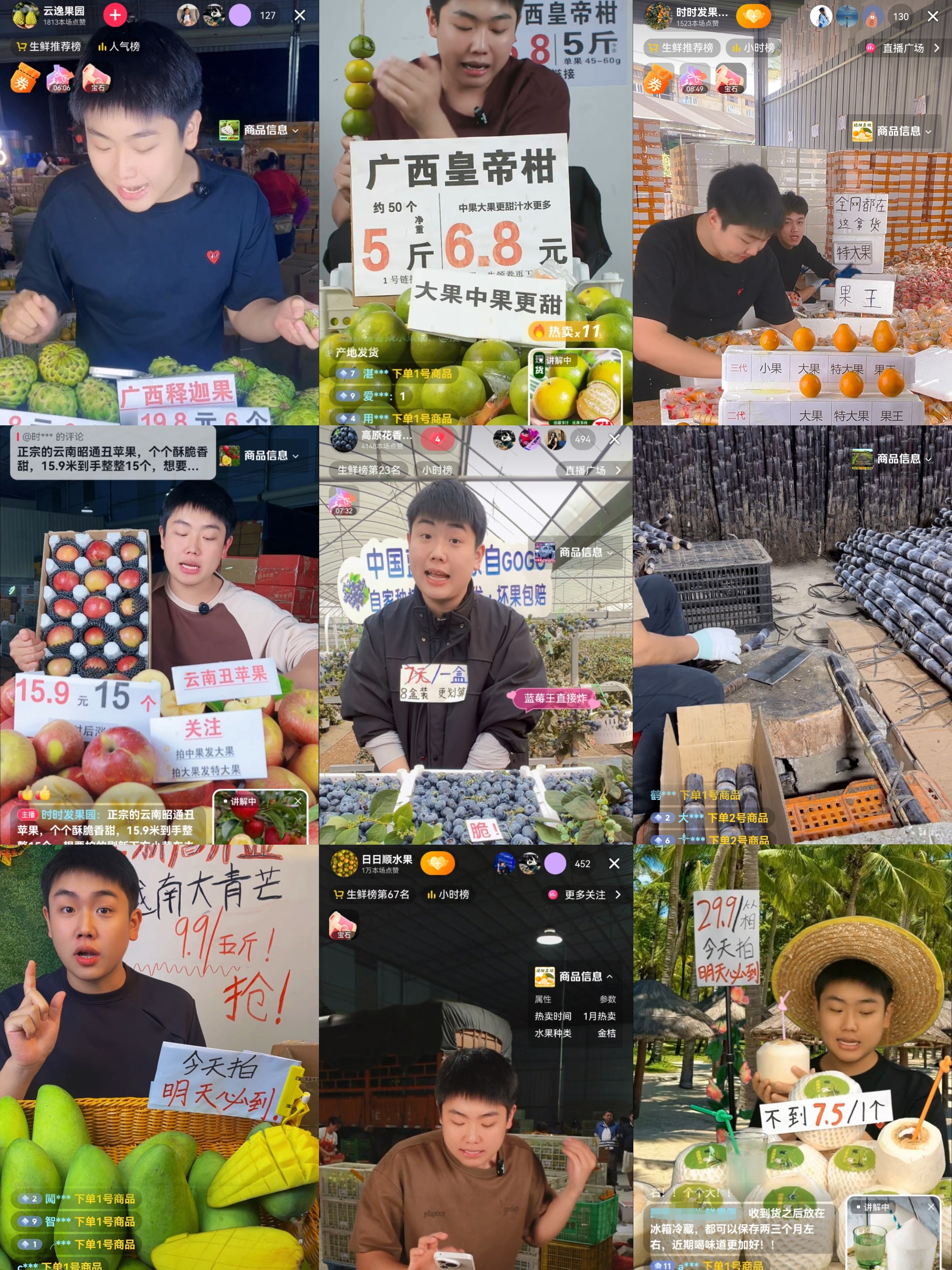 面对琳琅满目的滞销农副产品,许培帅在实践中逐步探索出一套创新模式:“直播电商+区域特色+传帮带”。他首先将本地特色产业进行整合,打造出具有高附加值的区域主导产品。通过深入调研和市场分析,他成功整合了百香果、椰青、榴莲、车厘子、甘蔗、金桔、皇帝柑、沃柑、蓝莓、红薯、牡丹花茶等数十种地方特色产品,显著提升了农产品的综合竞争力。接着,他建立了一站式服务站,涵盖选品分类、仓储包装、物流发货及售后保障等全方位服务。这一举措不仅提高了运营效率,还降低了成本,为农产品的销售提供了坚实的保障。最后,他通过构建n+1账号矩阵,形成了良性循环,实现了传帮带的效应。不仅他自己在电商直播领域取得了显著成绩,还通过模式复制,帮助更多的人投身于电商助农事业。他的直播间多次荣登抖音生鲜带货榜单,场均销售额达25万元,成为电商助农领域的佼佼者。