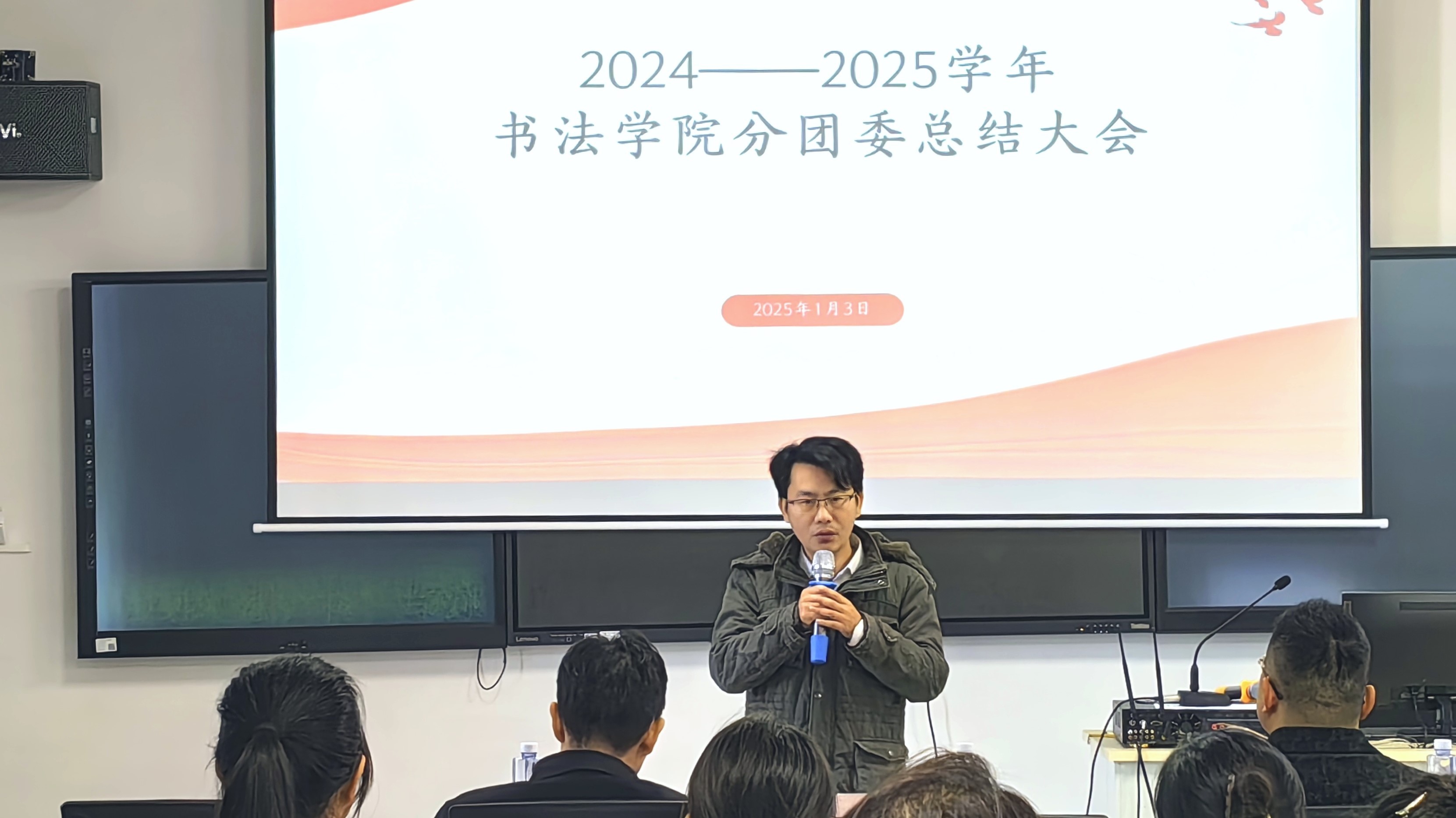 2025年1月3日,书法学院分团委2024年年终总结大会在艺德楼书法教研室507举行。本次大会全面总结了过去一年分团委的工作成果,分析了工作中存在的问题,并为新一年的工作指明方向。书法学院常务副院长苏乃从、学院党支部书记喻广林、学院党支部副书记左云飞、学工办主任兼分团委书记李家琪、分团委指导老师石建玲出席会议,分团委全体成员参加此次大会。