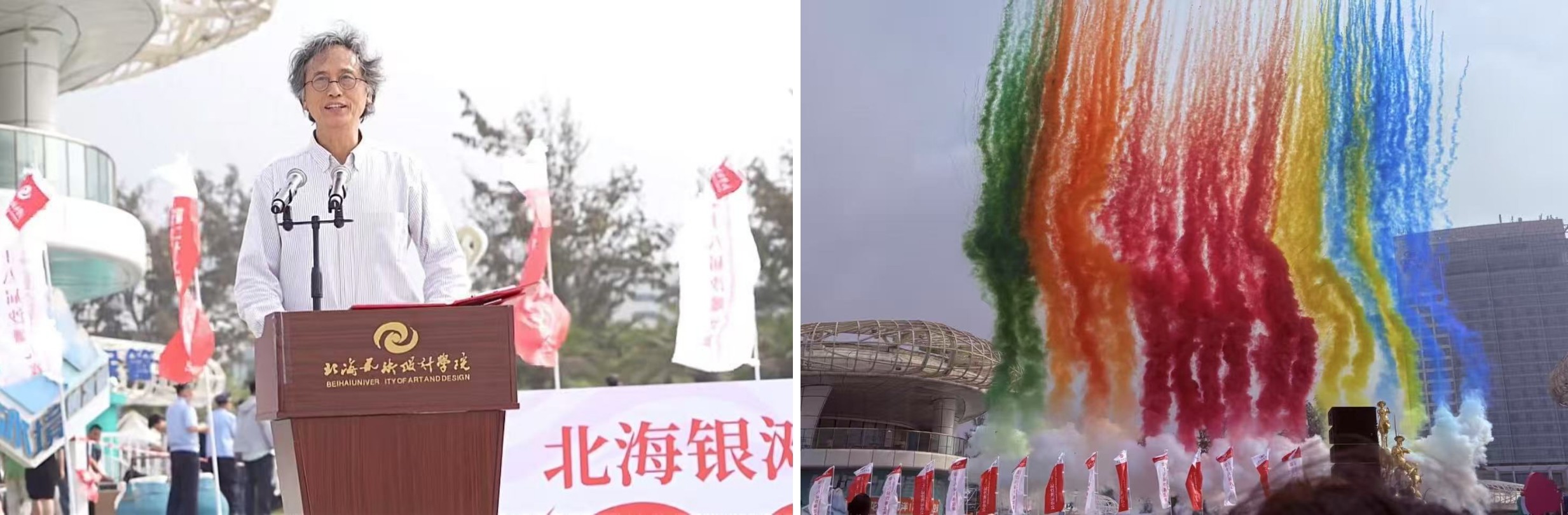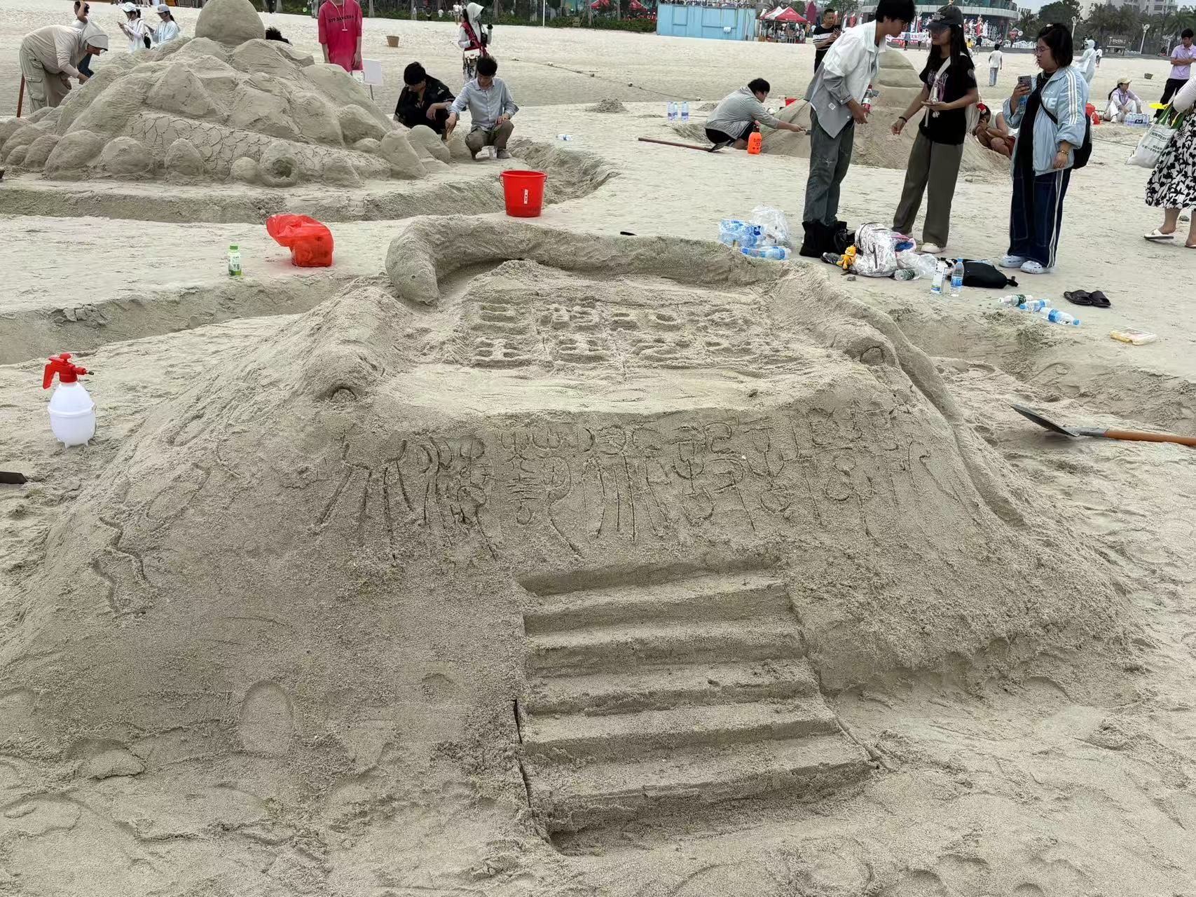 2025年4月18日,由北海艺术设计学院主办,北海旅游集团有限公司承办的北海银滩沙雕比赛暨北艺第二十二届沙滩运动会在北海市海滩公园成功开展。上午七点书法学院学工教师和各班辅导员老师带领学生陆续到达活动现场,开幕式九点准时开始,由校长卢新华致辞,节目精彩纷呈,随着一声炮响和彩烟升天,沙滩运动会正式拉开帷幕。