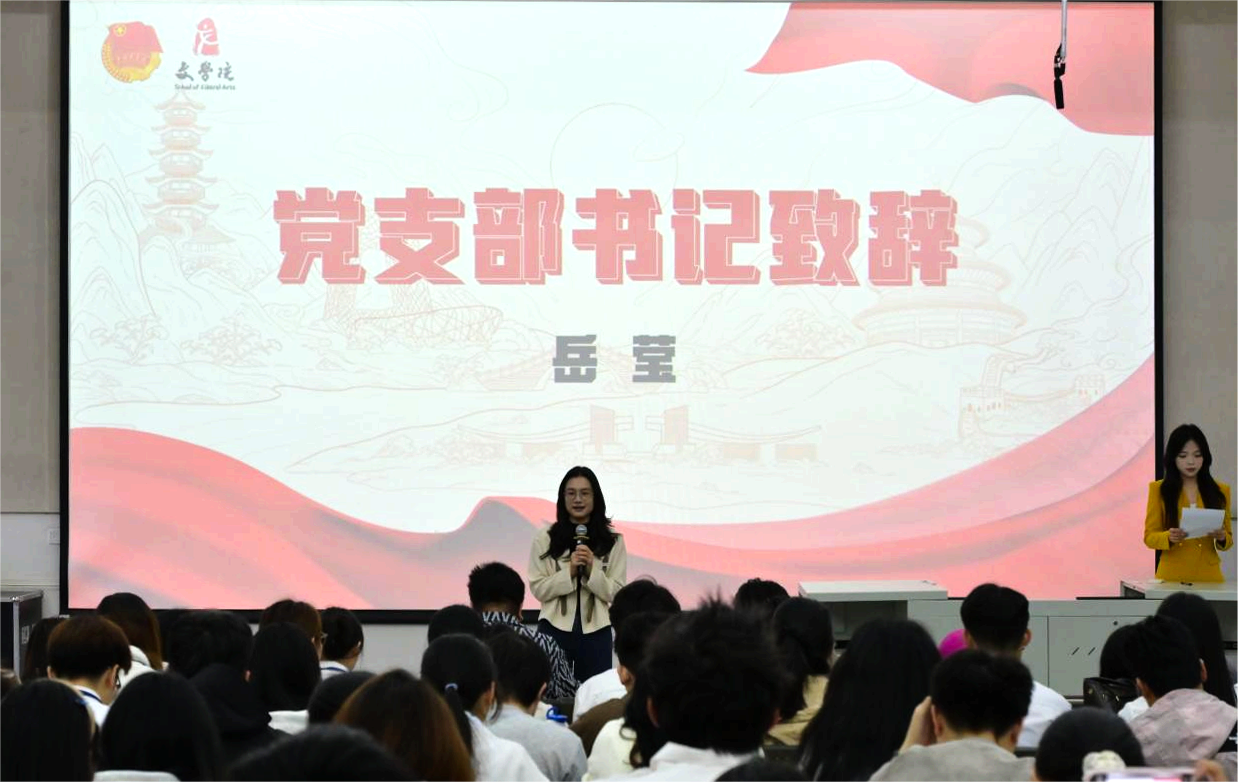 大会首先由文学院党支部书记岳莹发表讲话。她对分团委开展的各项工作及取得的工作成效给予高度认可,并向分团委全体学生干部提出期望,勉励大家认真总结工作经验、沉淀思考,持续提升综合素养与服务能力。同时,她也关切询问同学们的学业情况,鼓励大家在接下来的期末考试中取得理想成绩。