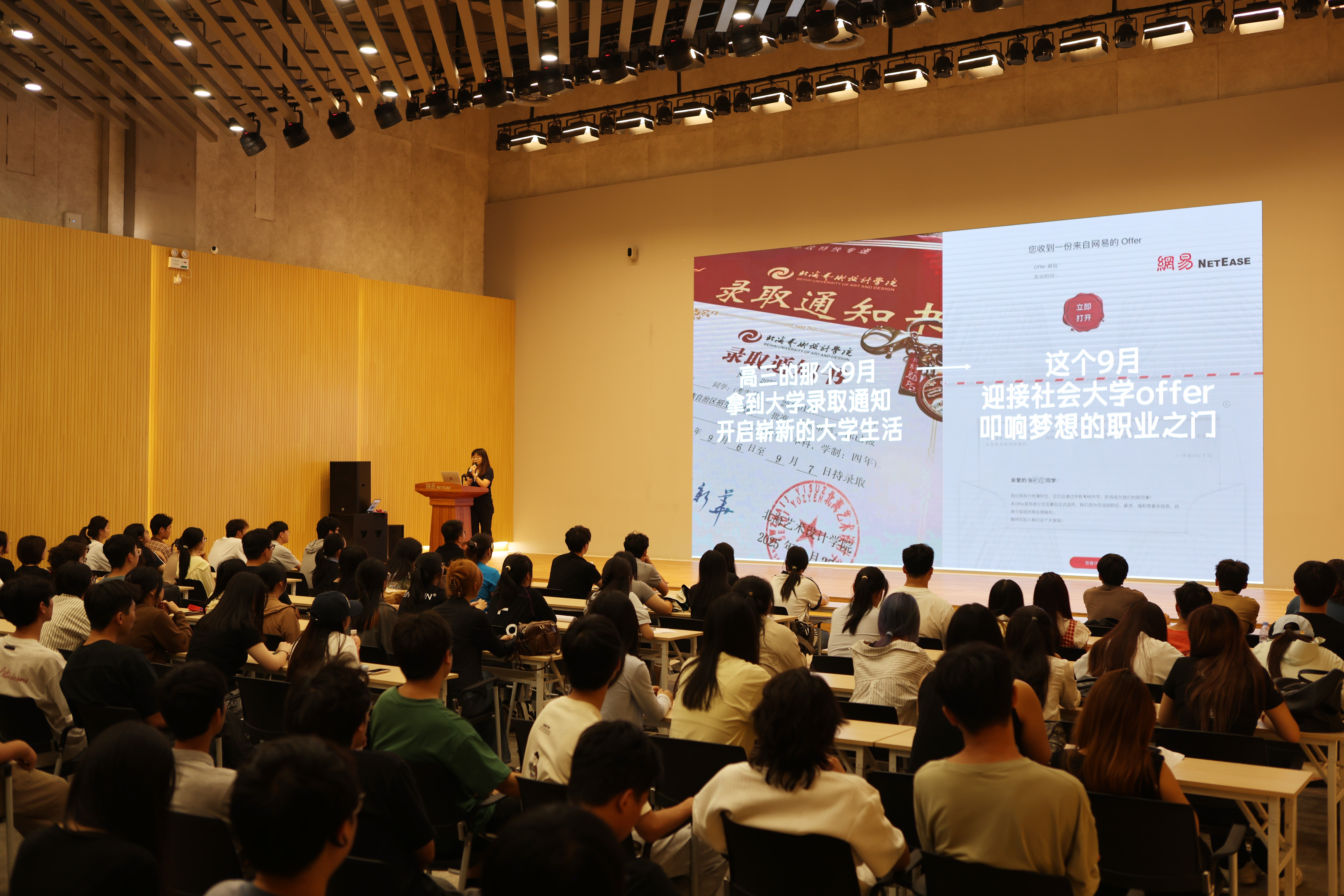活动伊始,网易有道策划总监孙莉女士对学院师生的到来表示了热烈欢迎。她系统介绍了网易从传统门户网站到多元化互联网科技企业的发展历程,重点剖析了音乐、教育、传媒等核心业务板块的生态布局。结合当前就业环境,孙莉女士通过详实数据指出,虽然就业市场面临挑战,但数字内容创作、用户体验设计、在线教育产品开发等领域仍保持强劲的人才需求。