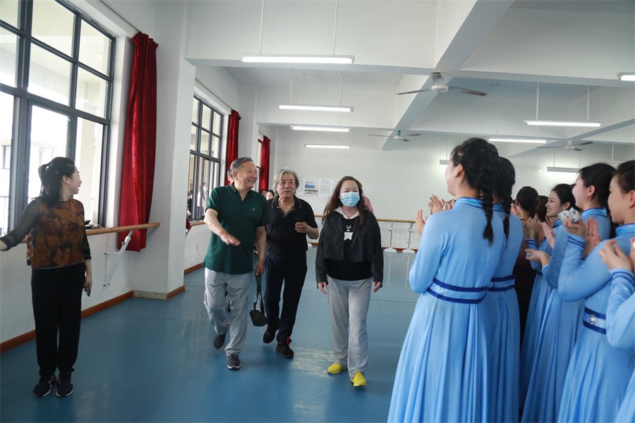 4月24日上午,我校舞蹈表演专业任家和教授携舞蹈教育专家潘志涛教授、刑多里教授到我校舞蹈表演专业做教学交流指导。