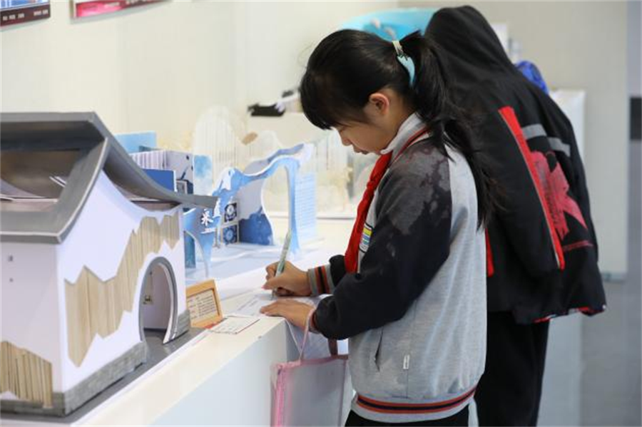 第二实验小学师生一行前往南校区艺德楼八楼展厅参观由建筑与环境艺术学院主办的“美丽中国·文化之美”2023展示空间设计主题作品展。在石少平、胡蝶老师的讲解下,第二实验小学师生认真观看每一件作品,并纷纷表达了对作品的感受和看法,展现了他们对美的独特理解。此次参观通过引导学生对模型作品背后故事的了解,激发学生思考美好家园的构建和对美好生活的向往,让青少年在艺术中感受思想的力量。