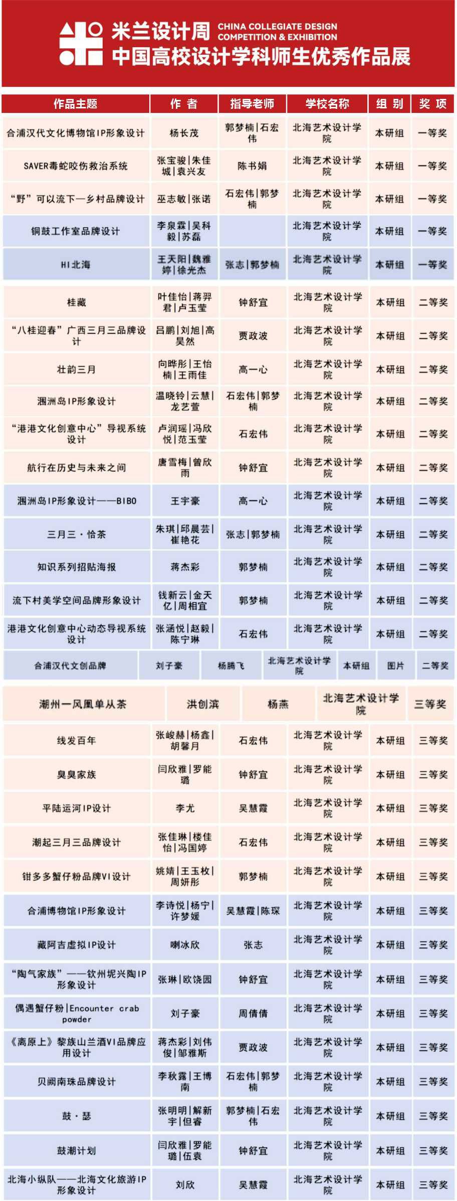 近日,2024第八届米兰设计周-中国高校设计学科师生优秀作品展全国赛事落下帷幕,我校设计艺术学院师生共获奖177项,其中包括国赛一等奖5项、二等奖12项、三等奖15项,省赛一等奖30项、二等奖47项、三等奖68项。