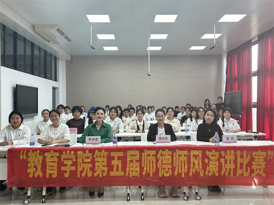 为大力弘扬教育家精神,积极营造尊师重教的良好氛围,4月14日-17日,教育学院在西校区图书馆五楼智慧教室举办了第五届师德师风演讲比赛。教育学院副院长蒙剑英,学前教育教研室主任覃思,教育学院教师陈美霖担任比赛评委。