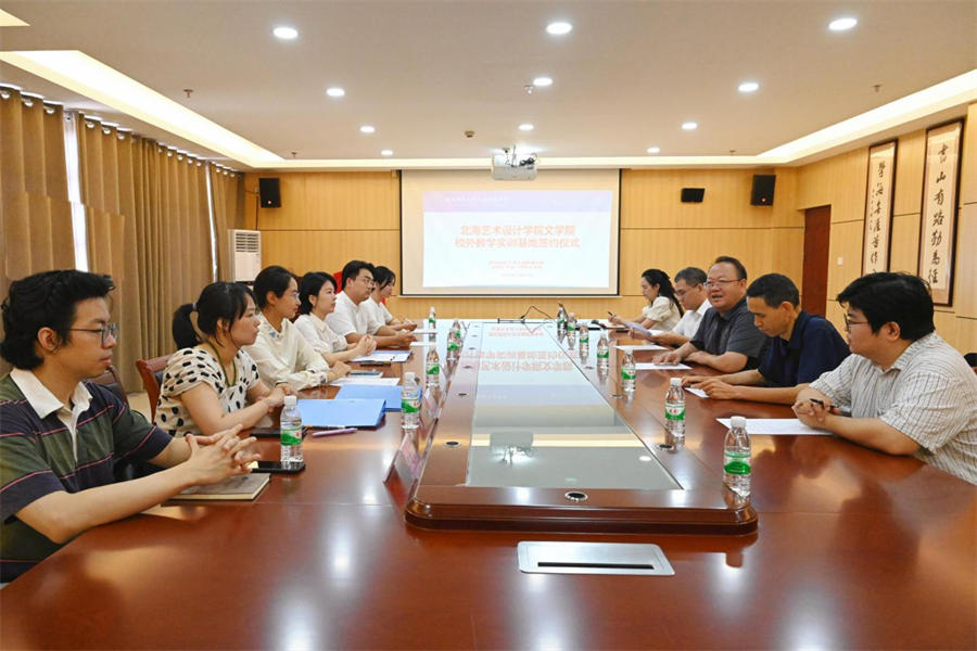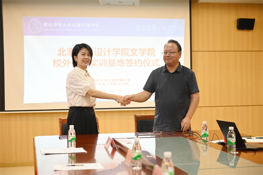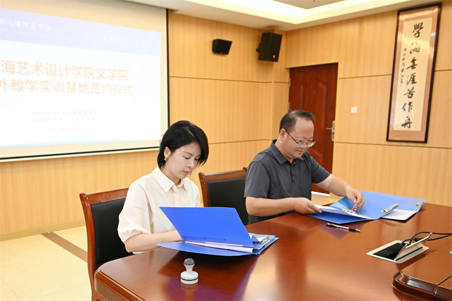 会上,双方共同签署了校外实训基地协议。根据协议内容,双方将在学生实习、师资培训等方面开展深入合作。文学院定期选派优秀学生到西北师范大学北海附属中学进行实习,为中学课程教学提供必要协助,并为中学教师提供专业培训和学术交流机会。西北师范大学北海附属中学为文学院学生提供实习岗位和实践教学平台,并进行专业的培训和指导。