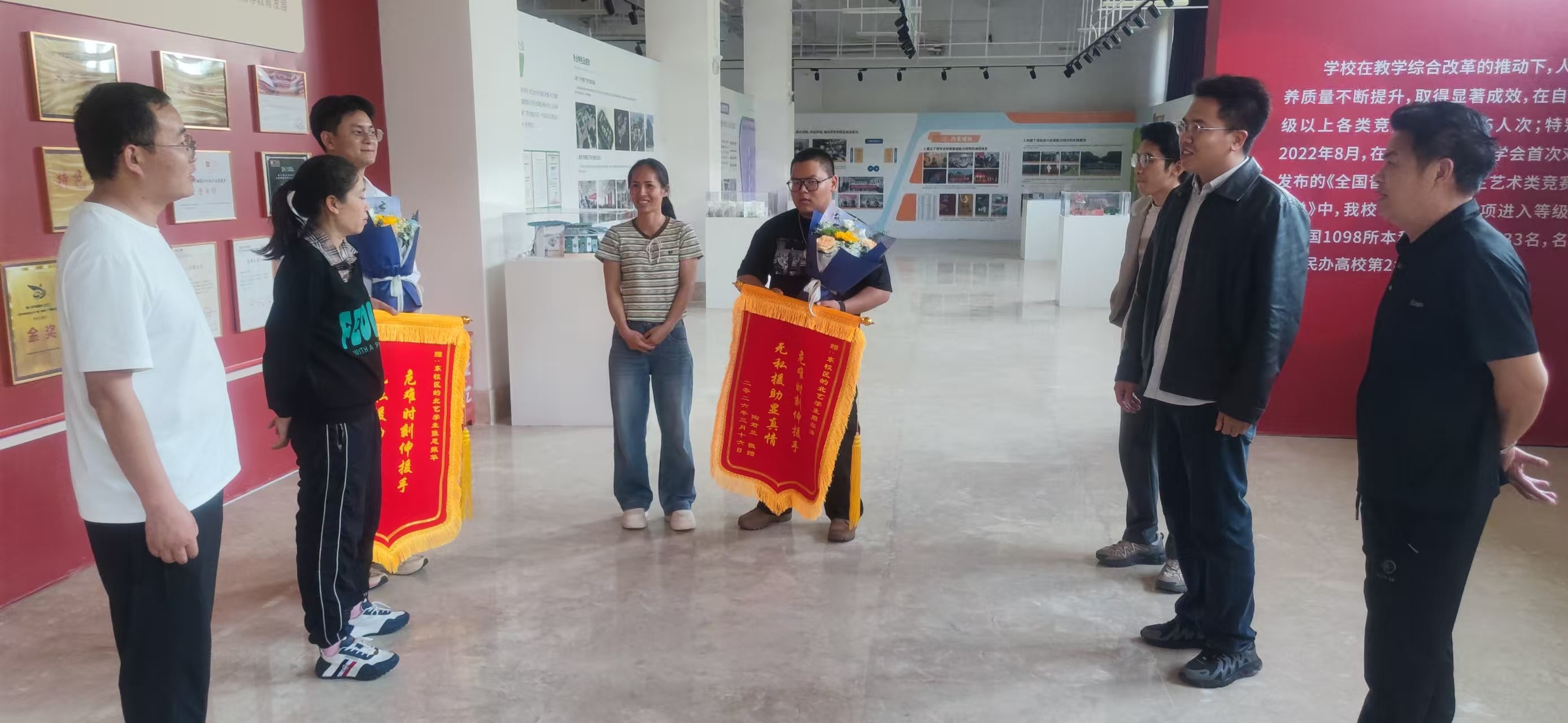 传媒艺术学院领导、美术学院领导及伤者家长与见义勇为学生合影