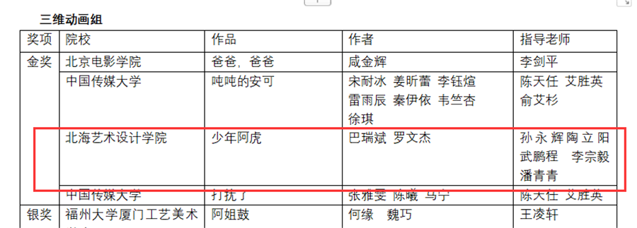 三维动画组《少年阿虎》荣获金奖