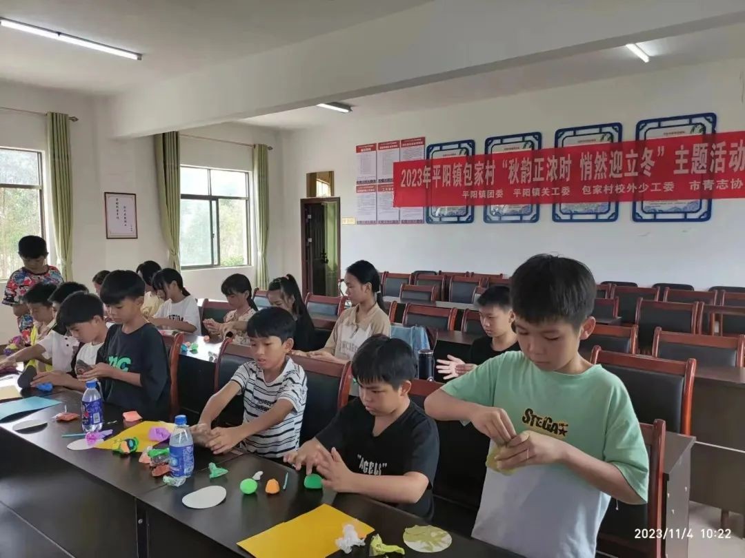 在立冬之际,我们在包山村开展了“秋韵正浓时,悄然迎立冬”主题活动。志愿们和孩子们一起完成手工作业,用黏土创作出自己喜欢的物品。看!他们设计出了一个超级大的饺子,特别有节日氛围。孩子们还发挥自己的创造力,制作出了一个又一个有意思的作品,他们迫不及待地拿到老师面前,想展示自己的成果。